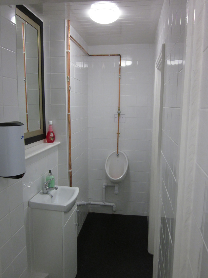 The Gentlemen have not missed out, we have a downstairs Urinal room (with hand wash of course) and further full facilities on the first floor. Clean light and adequate mirrors.